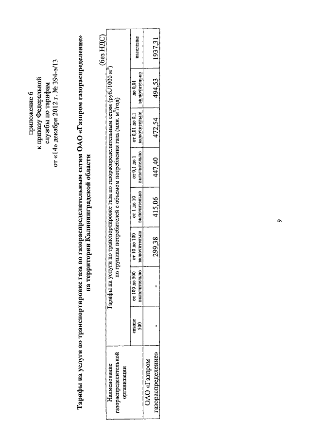 ПРИКАЗ ФСТ РФ от 14.12.2012 N 394-э/13