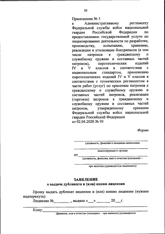 ПРИКАЗ Росгвардии от 02.04.2020 N 95