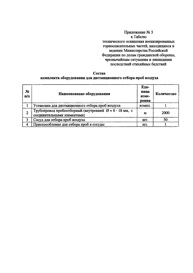 "ОБ УТВЕРЖДЕНИИ ТАБЕЛЯ ТЕХНИЧЕСКОГО ОСНАЩЕНИЯ ВОЕНИЗИРОВАННЫХ ГОРНО - СПАСАТЕЛЬНЫХ ЧАСТЕЙ, НАХОДЯЩИХСЯ В ВЕДЕНИИ МИНИСТЕРСТВА РОССИЙСКОЙ ФЕДЕРАЦИИ ПО ДЕЛАМ ГРАЖДАНСКОЙ ОБОРОНЫ, ЧРЕЗВЫЧАЙНЫМ СИТУАЦИЯМ И ЛИКВИДАЦИИ ПОСЛЕДСТВИЙ СТИХИЙНЫХ БЕДСТВИЙ"