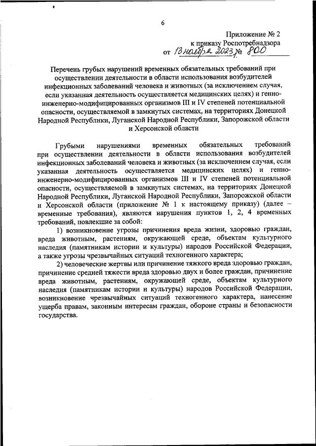 ПРИКАЗ Роспотребнадзора от 13.11.2023 N 800