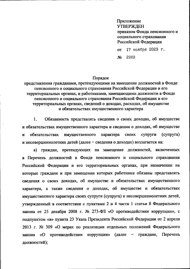 ПРИКАЗ СФР от 17.11.2023 N 2283