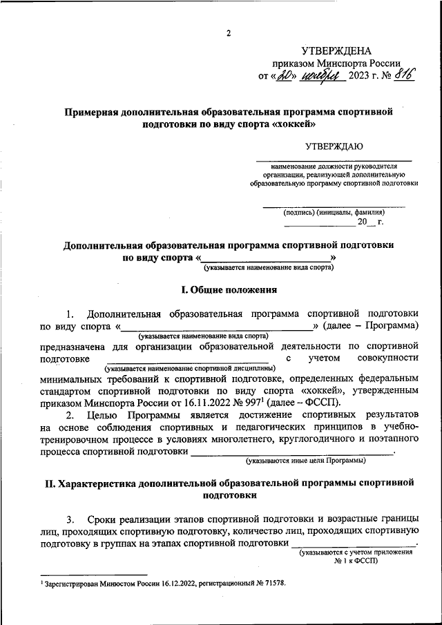 ПРИКАЗ Минспорта РФ от 20.11.2023 N 816