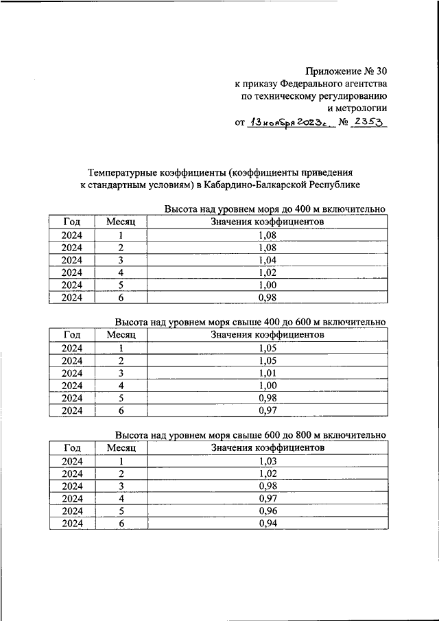 "ОБ УТВЕРЖДЕНИИ ТЕМПЕРАТУРНЫХ КОЭФФИЦИЕНТОВ (КОЭФФИЦИЕНТОВ ПРИВЕДЕНИЯ К СТАНДАРТНЫМ УСЛОВИЯМ) НА ПЕРВОЕ ПОЛУГОДИЕ 2024 ГОДА"