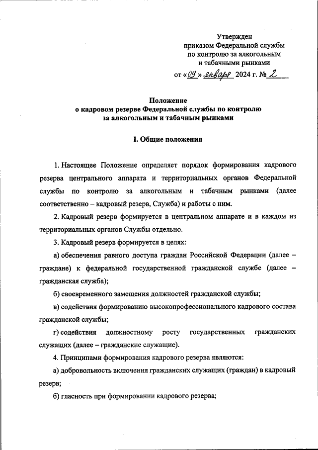 "ОБ УТВЕРЖДЕНИИ ПОЛОЖЕНИЯ О КАДРОВОМ РЕЗЕРВЕ ФЕДЕРАЛЬНОЙ СЛУЖБЫ ПО КОНТРОЛЮ ЗА АЛКОГОЛЬНЫМ И ТАБАЧНЫМ РЫНКАМИ"