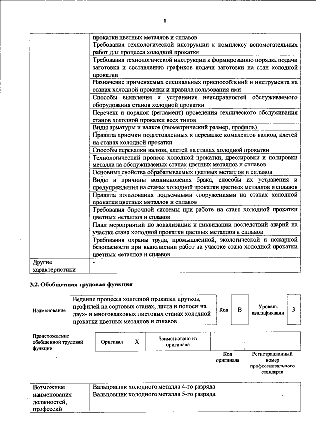 "ОБ УТВЕРЖДЕНИИ ПРОФЕССИОНАЛЬНОГО СТАНДАРТА "ВАЛЬЦОВЩИК ЦВЕТНЫХ МЕТАЛЛОВ"