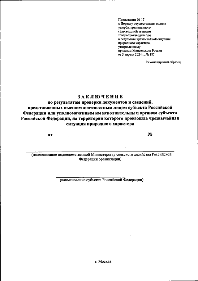 ПРИКАЗ Минсельхоза РФ от 03.04.2024 N 187