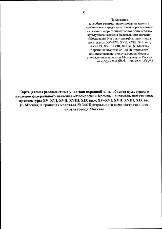 "ОБ УТВЕРЖДЕНИИ ОСОБЫХ РЕЖИМОВ ИСПОЛЬЗОВАНИЯ ЗЕМЕЛЬ И ТРЕБОВАНИЙ К ГРАДОСТРОИТЕЛЬНЫМ РЕГЛАМЕНТАМ В ГРАНИЦАХ ОХРАННОЙ ЗОНЫ ОБЪЕКТА КУЛЬТУРНОГО НАСЛЕДИЯ ФЕДЕРАЛЬНОГО ЗНАЧЕНИЯ "МОСКОВСКИЙ КРЕМЛЬ - АНСАМБЛЬ ПАМЯТНИКОВ АРХИТЕКТУРЫ XV - XVI, XVII, XVIII, XIX ВВ.", XV - XVI, XVII, XVIII, XIX ВВ. (Г. МОСКВА) В ГРАНИЦАХ КВАРТАЛА N 346 ЦЕНТРАЛЬНОГО АДМИНИСТРАТИВНОГО ОКРУГА ГОРОДА МОСКВЫ"