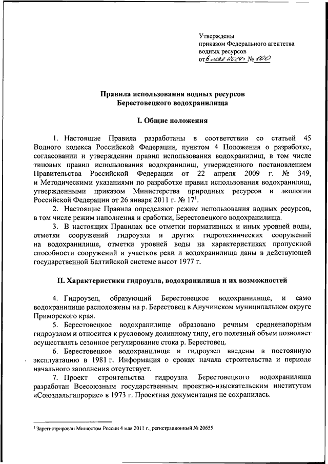 "ОБ УТВЕРЖДЕНИИ ПРАВИЛ ИСПОЛЬЗОВАНИЯ ВОДНЫХ РЕСУРСОВ БЕРЕСТОВЕЦКОГО ВОДОХРАНИЛИЩА"