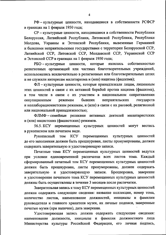 КОЛЛЕКЦИЙ, УТВЕРЖДЕННЫЕ ПРИКАЗОМ МИНИСТЕРСТВА КУЛЬТУРЫ РОССИЙСКОЙ