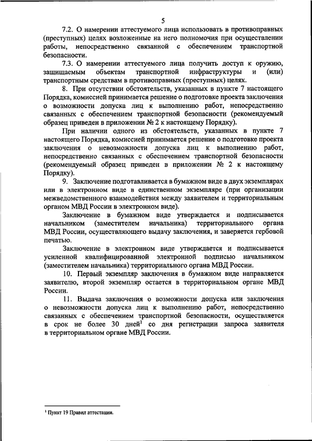 "ОБ УТВЕРЖДЕНИИ ПОРЯДКА ВЫДАЧИ ОРГАНАМИ ВНУТРЕННИХ ДЕЛ РОССИЙСКОЙ ФЕДЕРАЦИИ ЗАКЛЮЧЕНИЯ О ВОЗМОЖНОСТИ ДОПУСКА ИЛИ ЗАКЛЮЧЕНИЯ О НЕВОЗМОЖНОСТИ ДОПУСКА ЛИЦ К ВЫПОЛНЕНИЮ РАБОТ, НЕПОСРЕДСТВЕННО СВЯЗАННЫХ С ОБЕСПЕЧЕНИЕМ ТРАНСПОРТНОЙ БЕЗОПАСНОСТИ"
