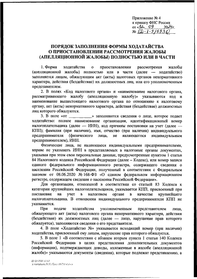 ПРИКАЗ ФНС РФ от 02.09.2024 N ЕД-7-9/693@