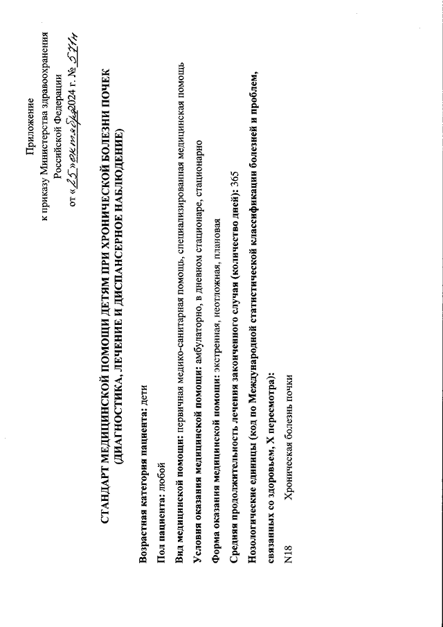 "ОБ УТВЕРЖДЕНИИ СТАНДАРТА МЕДИЦИНСКОЙ ПОМОЩИ ДЕТЯМ ПРИ ХРОНИЧЕСКОЙ БОЛЕЗНИ ПОЧЕК (ДИАГНОСТИКА, ЛЕЧЕНИЕ И ДИСПАНСЕРНОЕ НАБЛЮДЕНИЕ)"