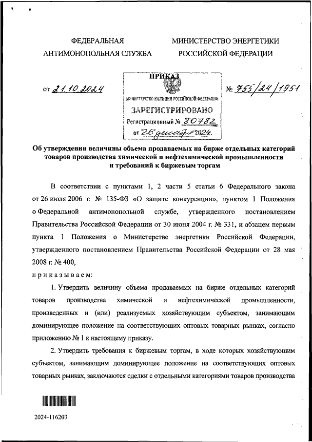 ПРИКАЗ Федеральной антимонопольной службы N 755/24, Минэнерго РФ