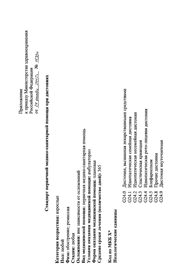 "ОБ УТВЕРЖДЕНИИ СТАНДАРТА ПЕРВИЧНОЙ МЕДИКО - САНИТАРНОЙ ПОМОЩИ ПРИ ДИСТОНИЯХ"