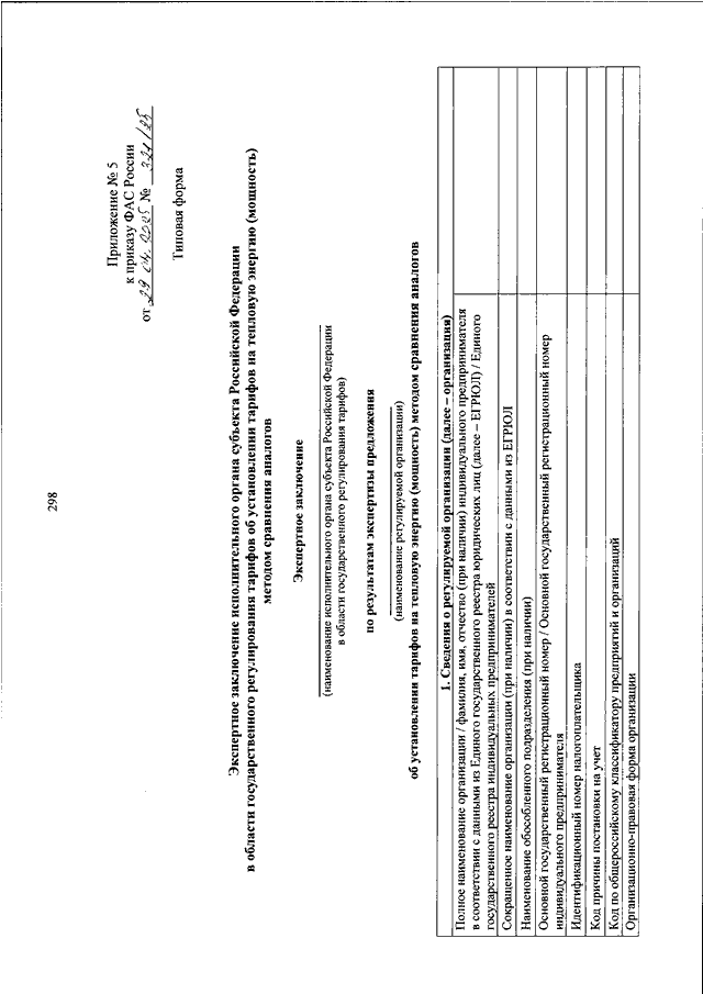 "ОБ УТВЕРЖДЕНИИ ТИПОВЫХ ФОРМ ЭКСПЕРТНОГО ЗАКЛЮЧЕНИЯ ИСПОЛНИТЕЛЬНОГО ОРГАНА СУБЪЕКТА РОССИЙСКОЙ ФЕДЕРАЦИИ В ОБЛАСТИ ГОСУДАРСТВЕННОГО РЕГУЛИРОВАНИЯ ТАРИФОВ В СФЕРЕ ТЕПЛОСНАБЖЕНИЯ"