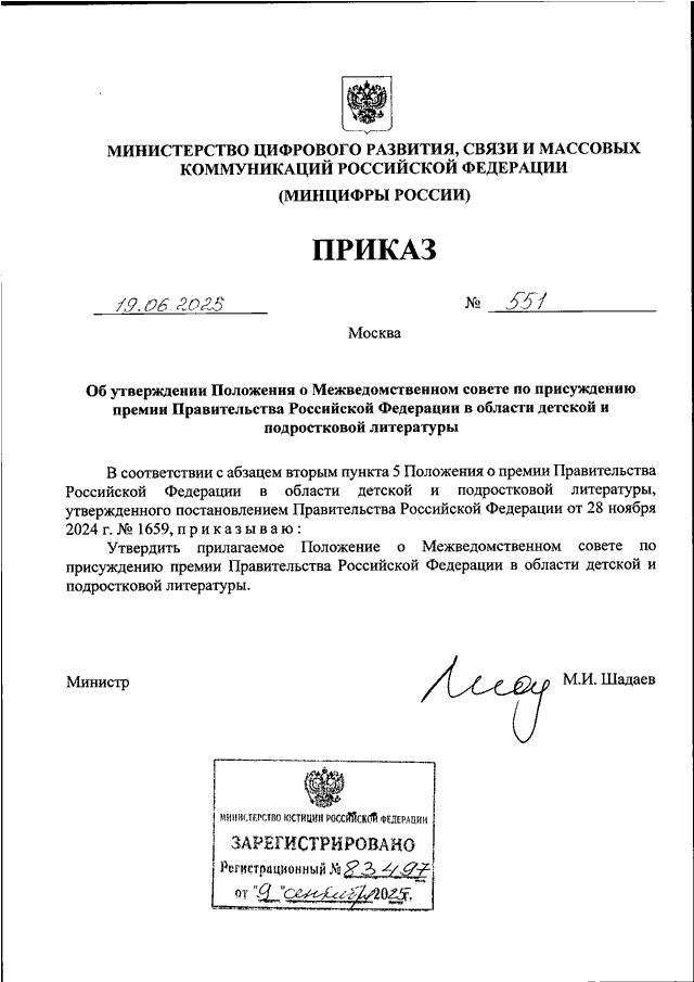 ПРИКАЗ Минцифры России от 19.06.2025 N 551