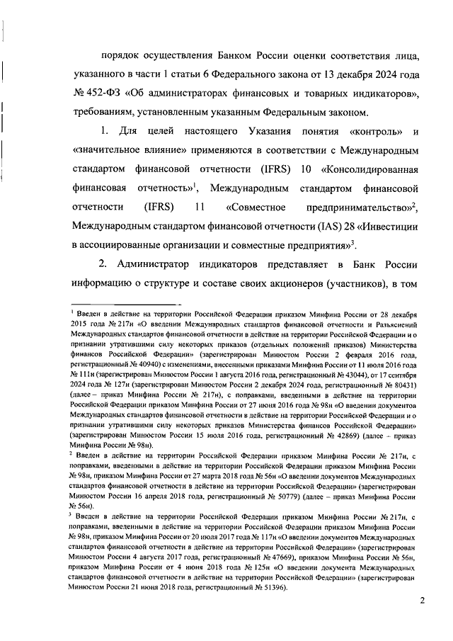 "О ПОРЯДКЕ И СРОКАХ ПРЕДСТАВЛЕНИЯ В БАНК РОССИИ АДМИНИСТРАТОРОМ ИНДИКАТОРОВ ИНФОРМАЦИИ О СТРУКТУРЕ И СОСТАВЕ СВОИХ АКЦИОНЕРОВ (УЧАСТНИКОВ), ЕЕ ФОРМЕ, ПОРЯДКЕ ОСУЩЕСТВЛЕНИЯ БАНКОМ РОССИИ ОЦЕНКИ СООТВЕТСТВИЯ ЛИЦА, УКАЗАННОГО В ЧАСТИ 1 СТАТЬИ 6 ФЕДЕРАЛЬНОГО ЗАКОНА ОТ 13 ДЕКАБРЯ 2024 Г. N 452-ФЗ "ОБ АДМИНИСТРАТОРАХ ФИНАНСОВЫХ И ТОВАРНЫХ ИНДИКАТОРОВ", ТРЕБОВАНИЯМ, УСТАНОВЛЕННЫМ УКАЗАННЫМ ФЕДЕРАЛЬНЫМ ЗАКОНОМ"
