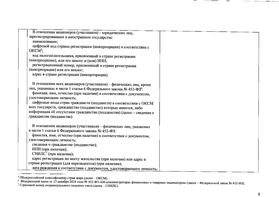 "О ПОРЯДКЕ И СРОКАХ ПРЕДСТАВЛЕНИЯ В БАНК РОССИИ АДМИНИСТРАТОРОМ ИНДИКАТОРОВ ИНФОРМАЦИИ О СТРУКТУРЕ И СОСТАВЕ СВОИХ АКЦИОНЕРОВ (УЧАСТНИКОВ), ЕЕ ФОРМЕ, ПОРЯДКЕ ОСУЩЕСТВЛЕНИЯ БАНКОМ РОССИИ ОЦЕНКИ СООТВЕТСТВИЯ ЛИЦА, УКАЗАННОГО В ЧАСТИ 1 СТАТЬИ 6 ФЕДЕРАЛЬНОГО ЗАКОНА ОТ 13 ДЕКАБРЯ 2024 Г. N 452-ФЗ "ОБ АДМИНИСТРАТОРАХ ФИНАНСОВЫХ И ТОВАРНЫХ ИНДИКАТОРОВ", ТРЕБОВАНИЯМ, УСТАНОВЛЕННЫМ УКАЗАННЫМ ФЕДЕРАЛЬНЫМ ЗАКОНОМ"