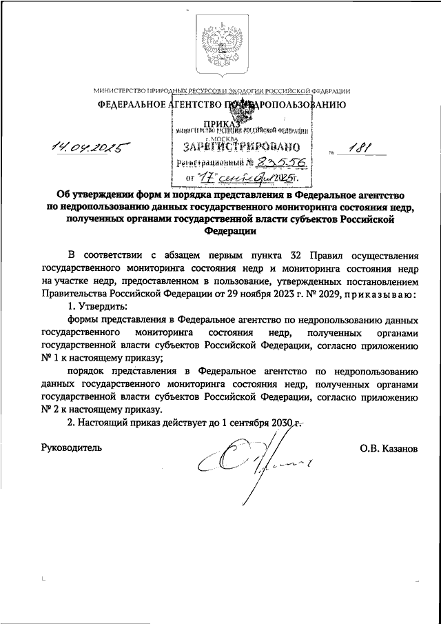ПРИКАЗ Роснедр от 14.04.2025 N 181