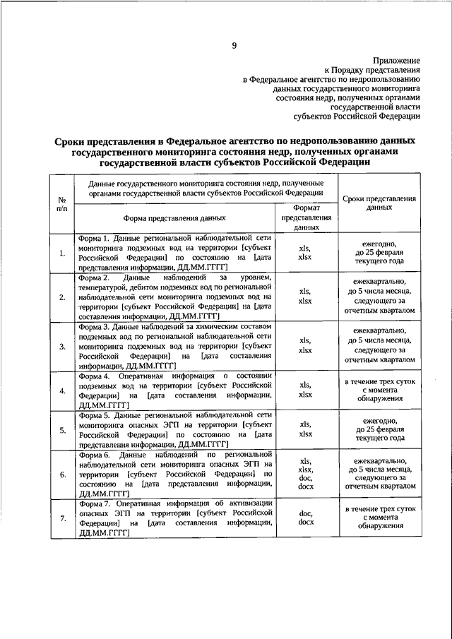 "ОБ УТВЕРЖДЕНИИ ФОРМ И ПОРЯДКА ПРЕДСТАВЛЕНИЯ В ФЕДЕРАЛЬНОЕ АГЕНТСТВО ПО НЕДРОПОЛЬЗОВАНИЮ ДАННЫХ ГОСУДАРСТВЕННОГО МОНИТОРИНГА СОСТОЯНИЯ НЕДР, ПОЛУЧЕННЫХ ОРГАНАМИ ГОСУДАРСТВЕННОЙ ВЛАСТИ СУБЪЕКТОВ РОССИЙСКОЙ ФЕДЕРАЦИИ"