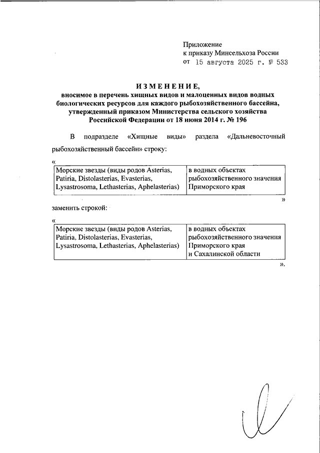 ПРИКАЗ Минсельхоза РФ от 15.08.2025 N 533