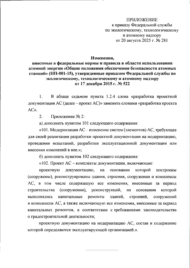 ПРИКАЗ Ростехнадзора от 20.08.2025 N 281