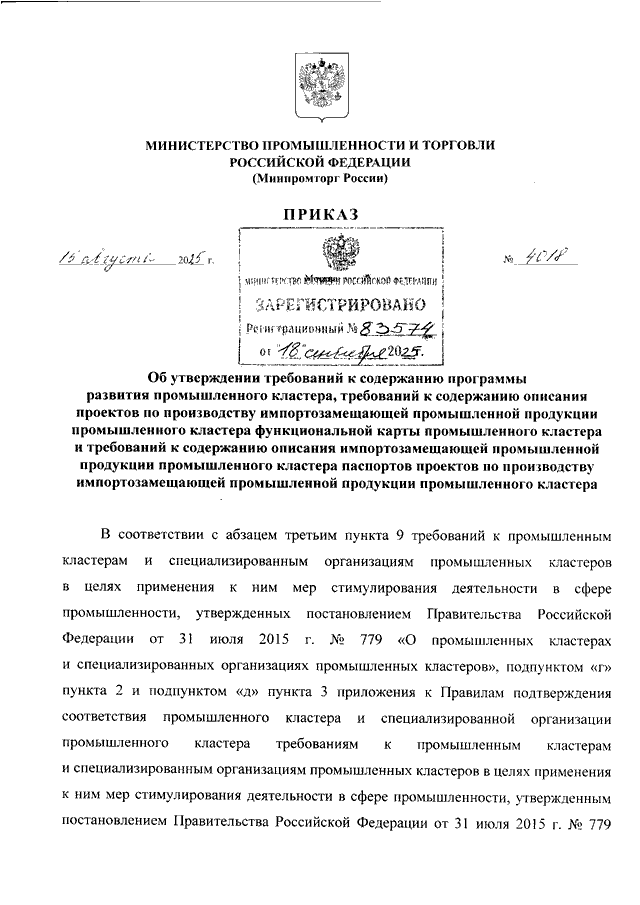 ПРИКАЗ Минпромторга РФ от 15.08.2025 N 4018