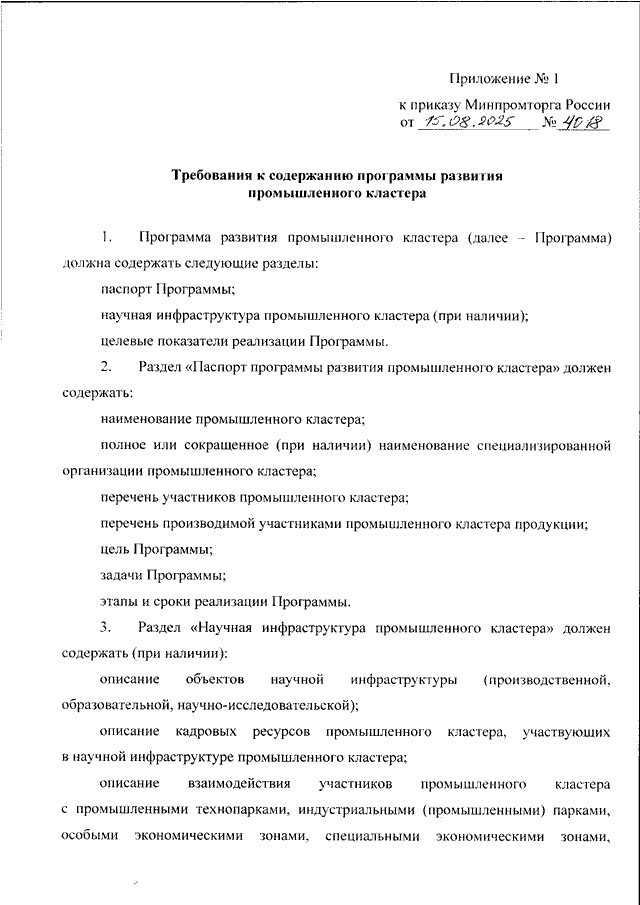 ПРИКАЗ Минпромторга РФ от 15.08.2025 N 4018