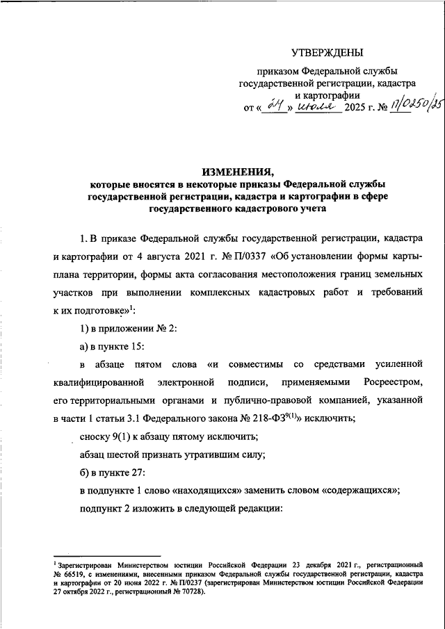 ПРИКАЗ Росреестра от 24.07.2025 N П/0250/25