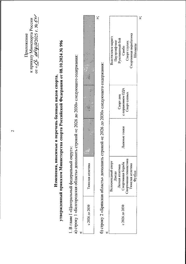 "О ВНЕСЕНИИ ИЗМЕНЕНИЙ В ПЕРЕЧЕНЬ БАЗОВЫХ ВИДОВ СПОРТА, УТВЕРЖДЕННЫЙ ПРИКАЗОМ МИНИСТЕРСТВА СПОРТА РОССИЙСКОЙ ФЕДЕРАЦИИ ОТ 08.10.2024 N 996"