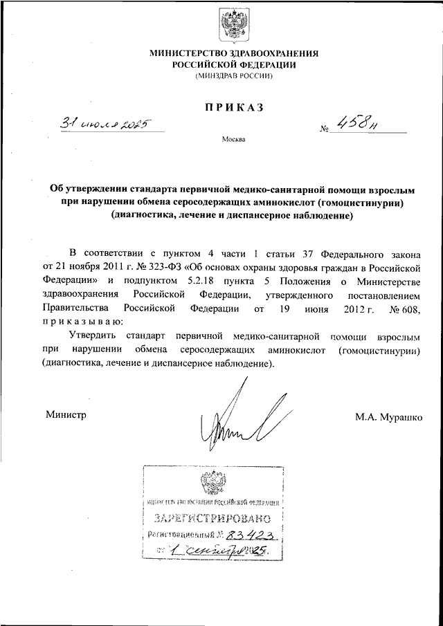 ПРИКАЗ Минздрава РФ от 31.07.2025 N 458н