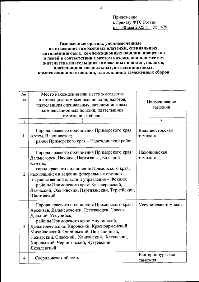 ПРИКАЗ ФТС РФ от 30.05.2025 N 479