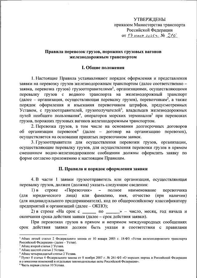 ПРИКАЗ Минтранса РФ от 17.07.2025 N 216
