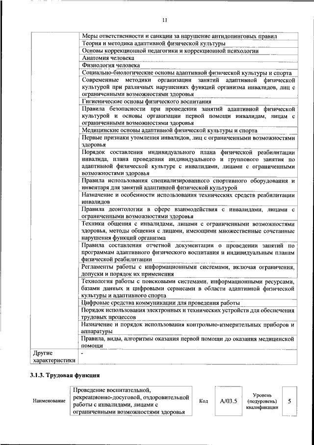 "ОБ УТВЕРЖДЕНИИ ПРОФЕССИОНАЛЬНОГО СТАНДАРТА "ИНСТРУКТОР - МЕТОДИСТ ПО АДАПТИВНОЙ ФИЗИЧЕСКОЙ КУЛЬТУРЕ И АДАПТИВНОМУ СПОРТУ"