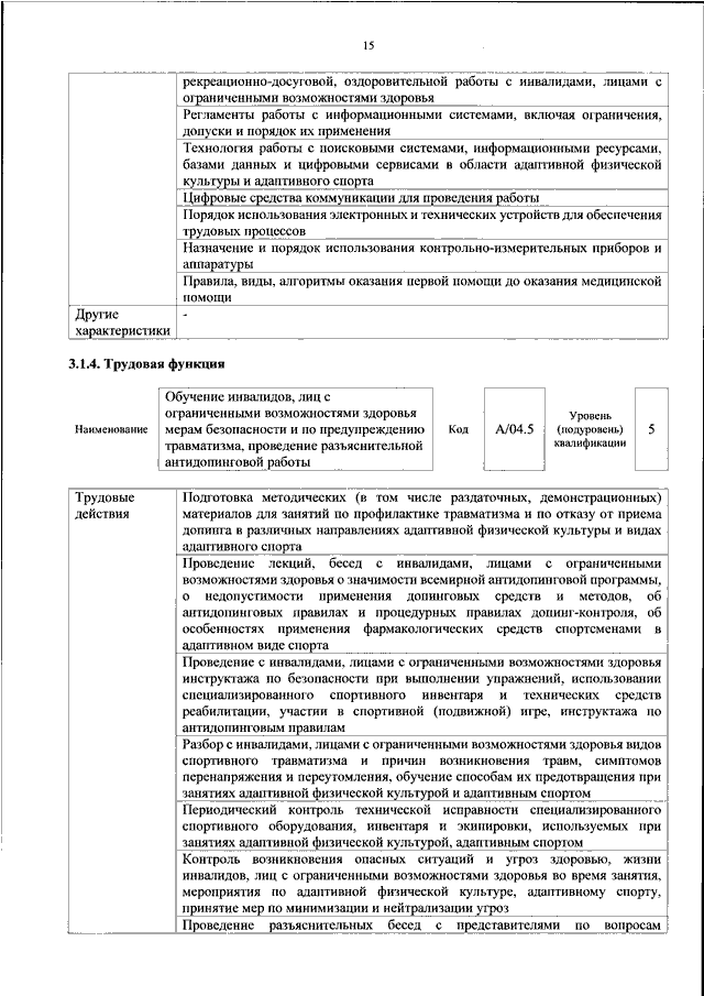 "ОБ УТВЕРЖДЕНИИ ПРОФЕССИОНАЛЬНОГО СТАНДАРТА "ИНСТРУКТОР - МЕТОДИСТ ПО АДАПТИВНОЙ ФИЗИЧЕСКОЙ КУЛЬТУРЕ И АДАПТИВНОМУ СПОРТУ"