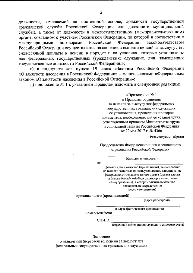 "О ВНЕСЕНИИ ИЗМЕНЕНИЙ В ПРАВИЛА ОБРАЩЕНИЯ ЗА ПЕНСИЕЙ ЗА ВЫСЛУГУ ЛЕТ ФЕДЕРАЛЬНЫХ ГОСУДАРСТВЕННЫХ ГРАЖДАНСКИХ СЛУЖАЩИХ, ЕЕ УСТАНОВЛЕНИЯ, ПРОВЕДЕНИЯ ПРОВЕРОК ДОКУМЕНТОВ, НЕОБХОДИМЫХ ДЛЯ ЕЕ УСТАНОВЛЕНИЯ, И В ПРАВИЛА ВЫПЛАТЫ ПЕНСИИ ЗА ВЫСЛУГУ ЛЕТ ФЕДЕРАЛЬНЫХ ГОСУДАРСТВЕННЫХ ГРАЖДАНСКИХ СЛУЖАЩИХ, ОСУЩЕСТВЛЕНИЯ КОНТРОЛЯ ЗА ЕЕ ВЫПЛАТОЙ, ПРОВЕДЕНИЯ ПРОВЕРОК ДОКУМЕНТОВ, НЕОБХОДИМЫХ ДЛЯ ЕЕ ВЫПЛАТЫ, УТВЕРЖДЕННЫЕ ПРИКАЗОМ МИНИСТЕРСТВА ТРУДА И СОЦИАЛЬНОЙ ЗАЩИТЫ РОССИЙСКОЙ ФЕДЕРАЦИИ ОТ 22 МАЯ 2017 Г. N 436Н"
