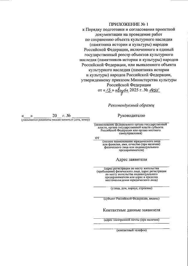 ПРИКАЗ Минкультуры РФ от 13.08.2025 N 1455