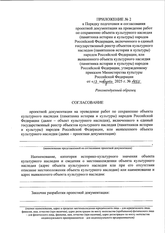 ПРИКАЗ Минкультуры РФ от 13.08.2025 N 1455