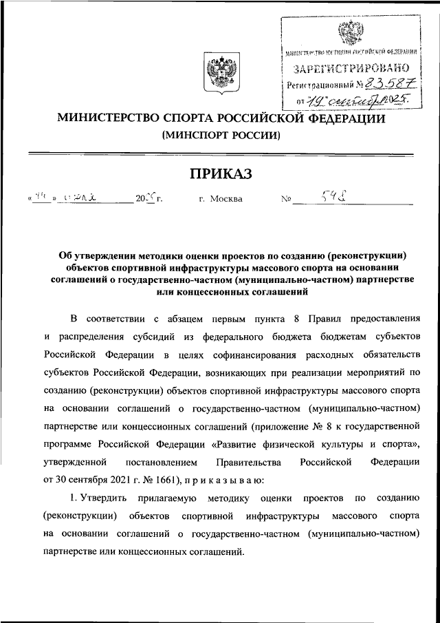 ПРИКАЗ Минспорта РФ от 14.07.2025 N 548