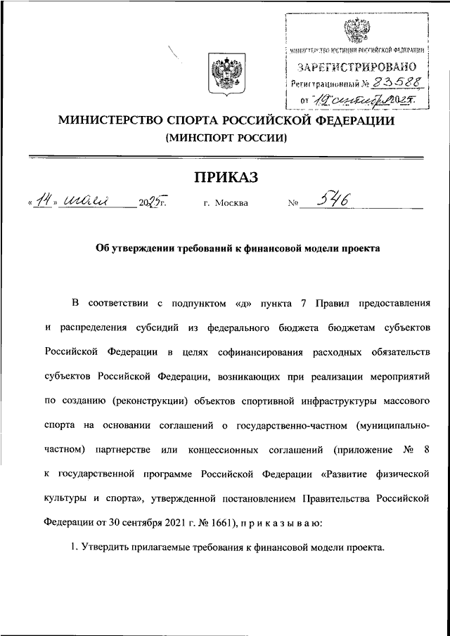 ПРИКАЗ Минспорта РФ от 14.07.2025 N 546