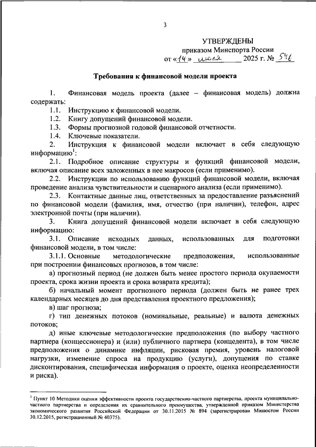 "ОБ УТВЕРЖДЕНИИ ТРЕБОВАНИЙ К ФИНАНСОВОЙ МОДЕЛИ ПРОЕКТА"