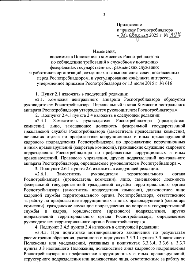 "О ВНЕСЕНИИ ИЗМЕНЕНИЙ В ПОЛОЖЕНИЕ О КОМИССИЯХ РОСПОТРЕБНАДЗОРА ПО СОБЛЮДЕНИЮ ТРЕБОВАНИЙ К СЛУЖЕБНОМУ ПОВЕДЕНИЮ ФЕДЕРАЛЬНЫХ ГОСУДАРСТВЕННЫХ ГРАЖДАНСКИХ СЛУЖАЩИХ И РАБОТНИКОВ ОРГАНИЗАЦИЙ, СОЗДАННЫХ ДЛЯ ВЫПОЛНЕНИЯ ЗАДАЧ, ПОСТАВЛЕННЫХ ПЕРЕД РОСПОТРЕБНАДЗОРОМ, И УРЕГУЛИРОВАНИЮ КОНФЛИКТА ИНТЕРЕСОВ, УТВЕРЖДЕННОЕ ПРИКАЗОМ РОСПОТРЕБНАДЗОРА ОТ 13 ИЮЛЯ 2015 Г. N 616"