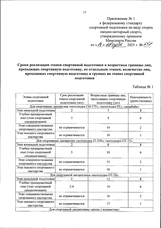 ПРИКАЗ Минспорта РФ от 14.08.2025 N 651