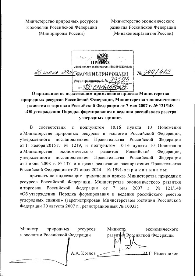 ПРИКАЗ Минприроды РФ N 349, Минэкономразвития РФ N 412 от 23.06.2025