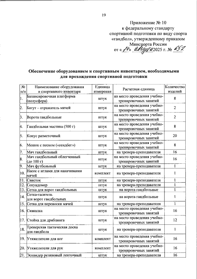 ПРИКАЗ Минспорта РФ от 14.08.2025 N 652