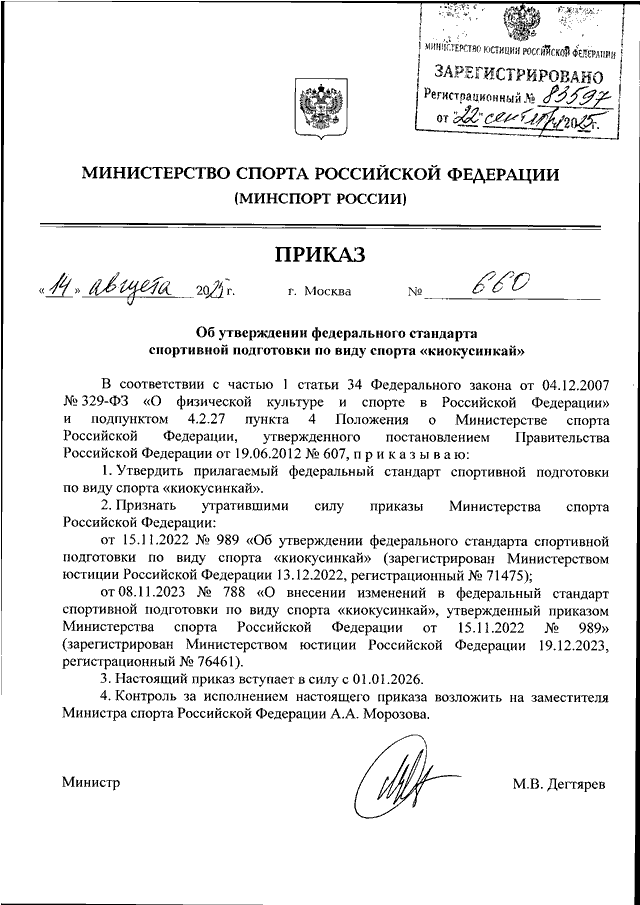 ПРИКАЗ Минспорта РФ от 14.08.2025 N 660