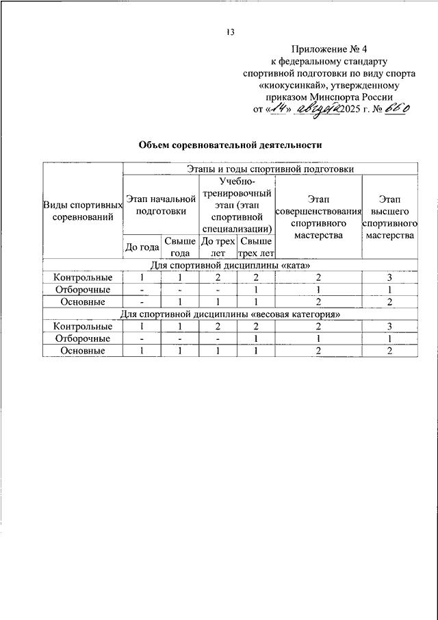 ПРИКАЗ Минспорта РФ от 14.08.2025 N 660