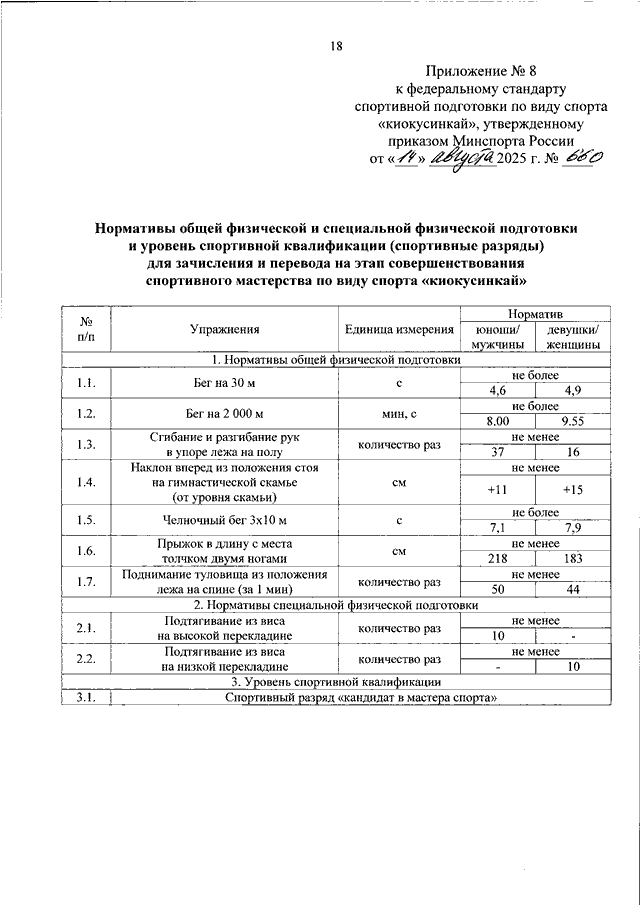 ПРИКАЗ Минспорта РФ от 14.08.2025 N 660
