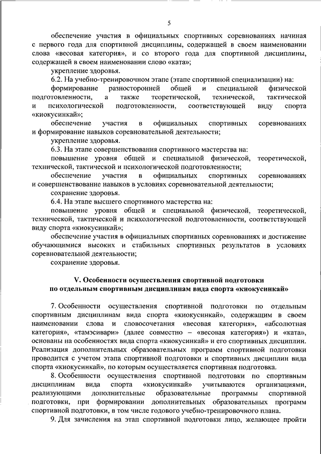 "ОБ УТВЕРЖДЕНИИ ФЕДЕРАЛЬНОГО СТАНДАРТА СПОРТИВНОЙ ПОДГОТОВКИ ПО ВИДУ СПОРТА "КИОКУСИНКАЙ"