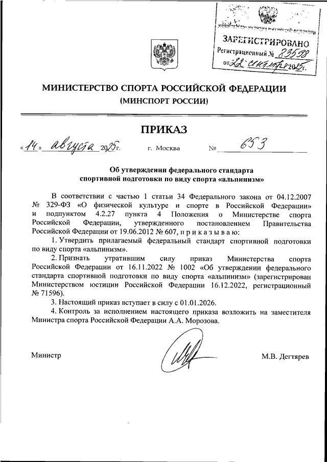 ПРИКАЗ Минспорта РФ от 14.08.2025 N 653